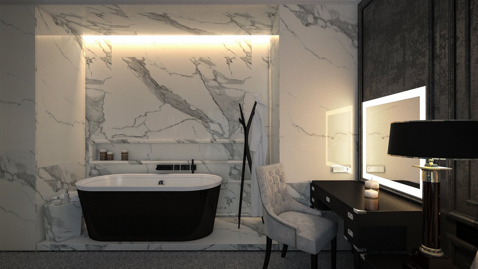 Klasyczne wnętrze spod naszej ręki przeplatane nowoczesnymi elementami designu. Projekt tego 125m apartamentu wykonywany był w usłudze TiMarc Interior Concierge.