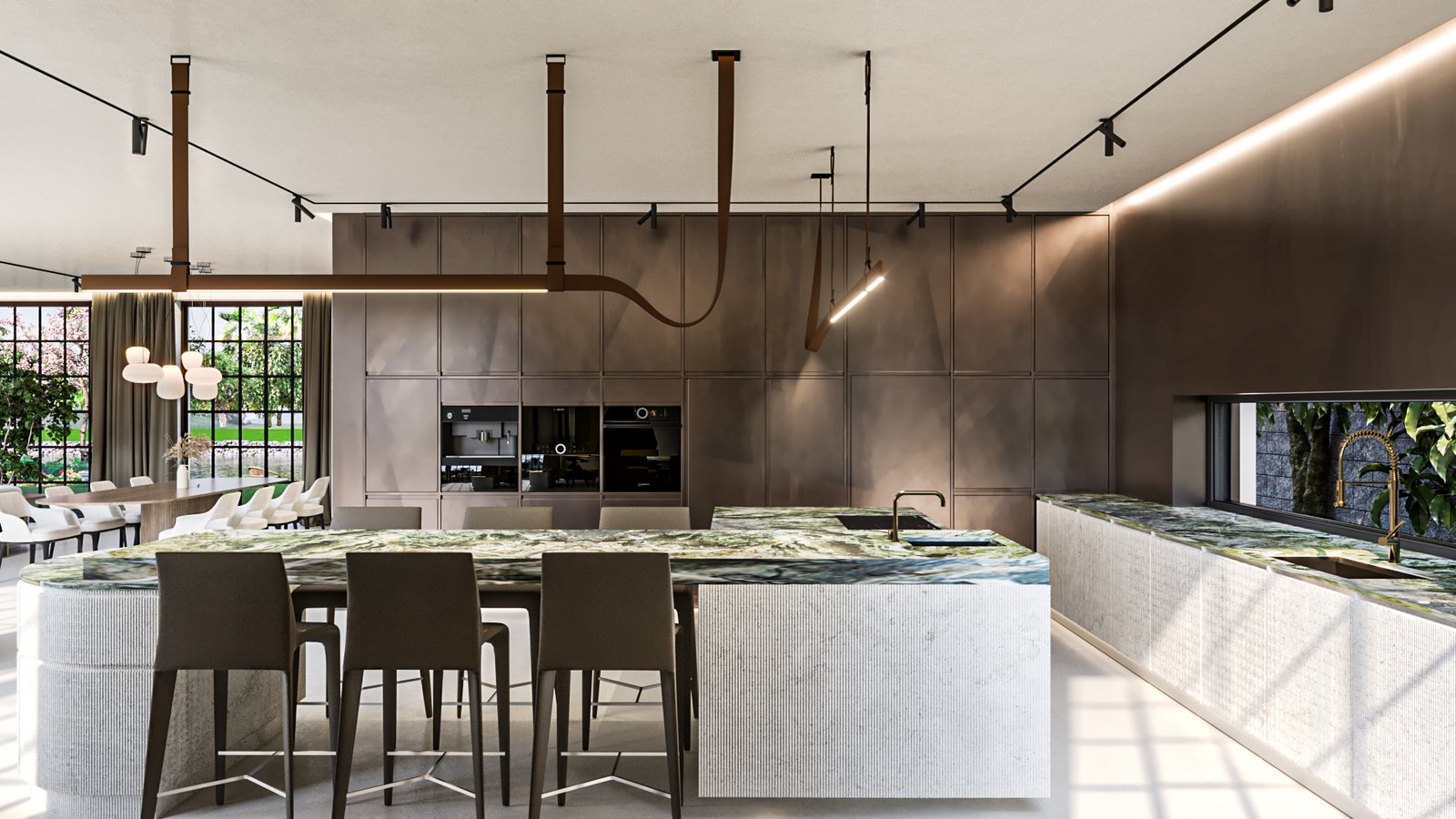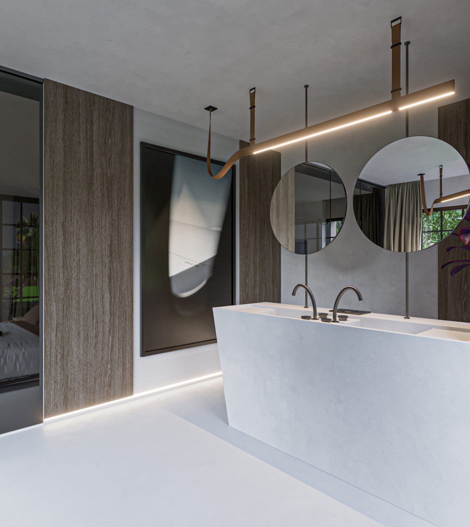 1200m2 stylu Japandi w podwarszawskim Konstancinie. Projekt realizowany w usłudze TiMarc Interior Concierge. Przestronne wnętrze stworzone z myślą o eleganckim minimalizmie który współgra z zielonym otoczeniem domu wylewającym sie do środka przez potężne przeszklenia.